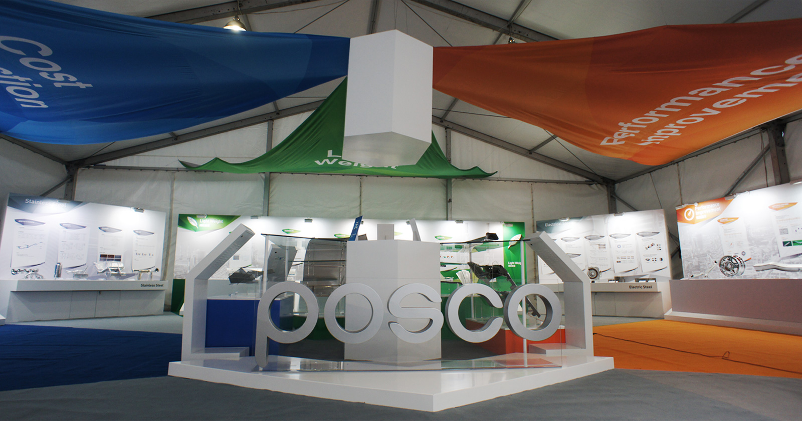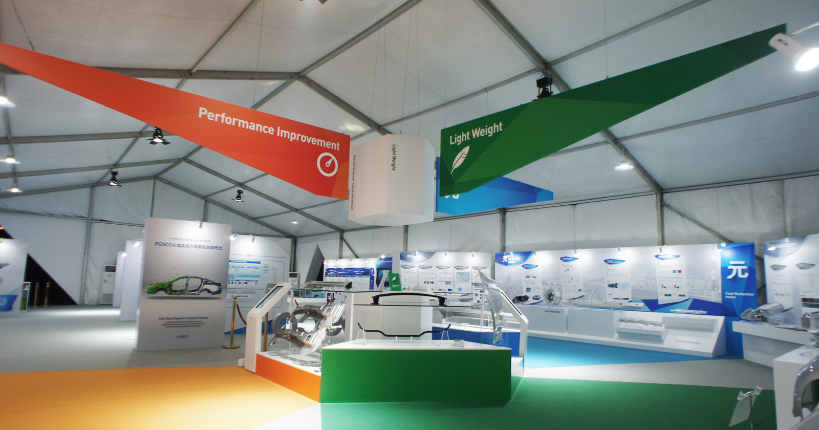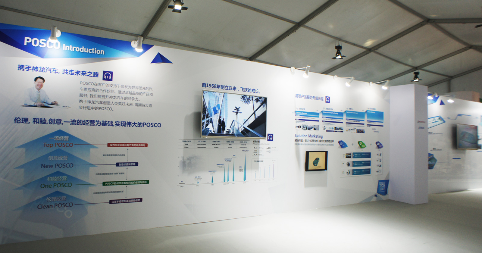 Eidetic Marketing was contracted to creatively design and construct POSCO's lobby exhibit for its Beijing office. Based upon the central pillar in the lobby, Eidetic Marketing offered an innovative solution to best portray the brand's capabilitis and global presence. Applying a spiral structure around the pillar, POSCO's products were placed atop the construct to best represent the corporation's services in one holistic view.