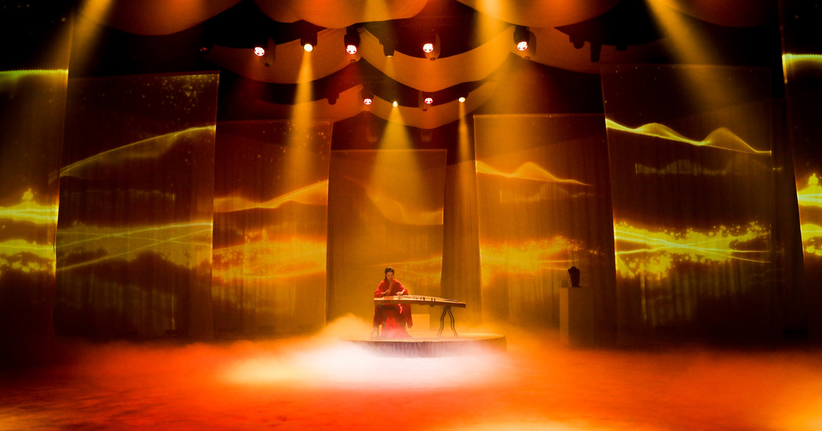 Eidetic took on this monumental mission of taking the event where every year the objective of the event is to show newly launched technology to target audiences effectively, and then combine that style of demonstration with an art exhibition successfully. We added the artistic atmosphere by separating the space into 4 seasons, with a day and night cycle. In the spring zone, the bamboo forest represented growth, lotus leaves floating on an LED screen pond and an LED waterfall with boats installed represented summer; in autumn, there was a yellow tent, parted open to reveal projections of poetic phrases; and the winter displayed vivid images of ice, snow, blizzards and icicles, with moving LED strips and laser emphasis.